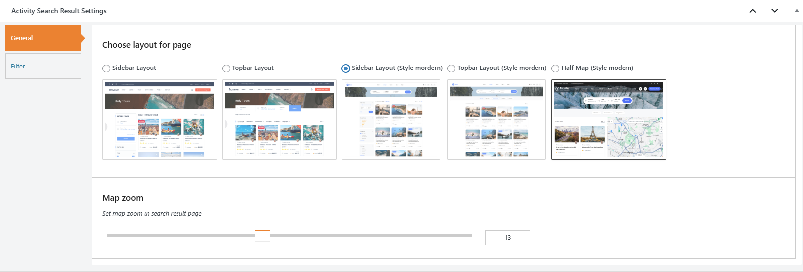 On the Admin Dashboard, go to the Page> All Pages> find your activity search result page to edit. For example, Activity Search Sidebar or Activity Search Topbar pages to edit it.
