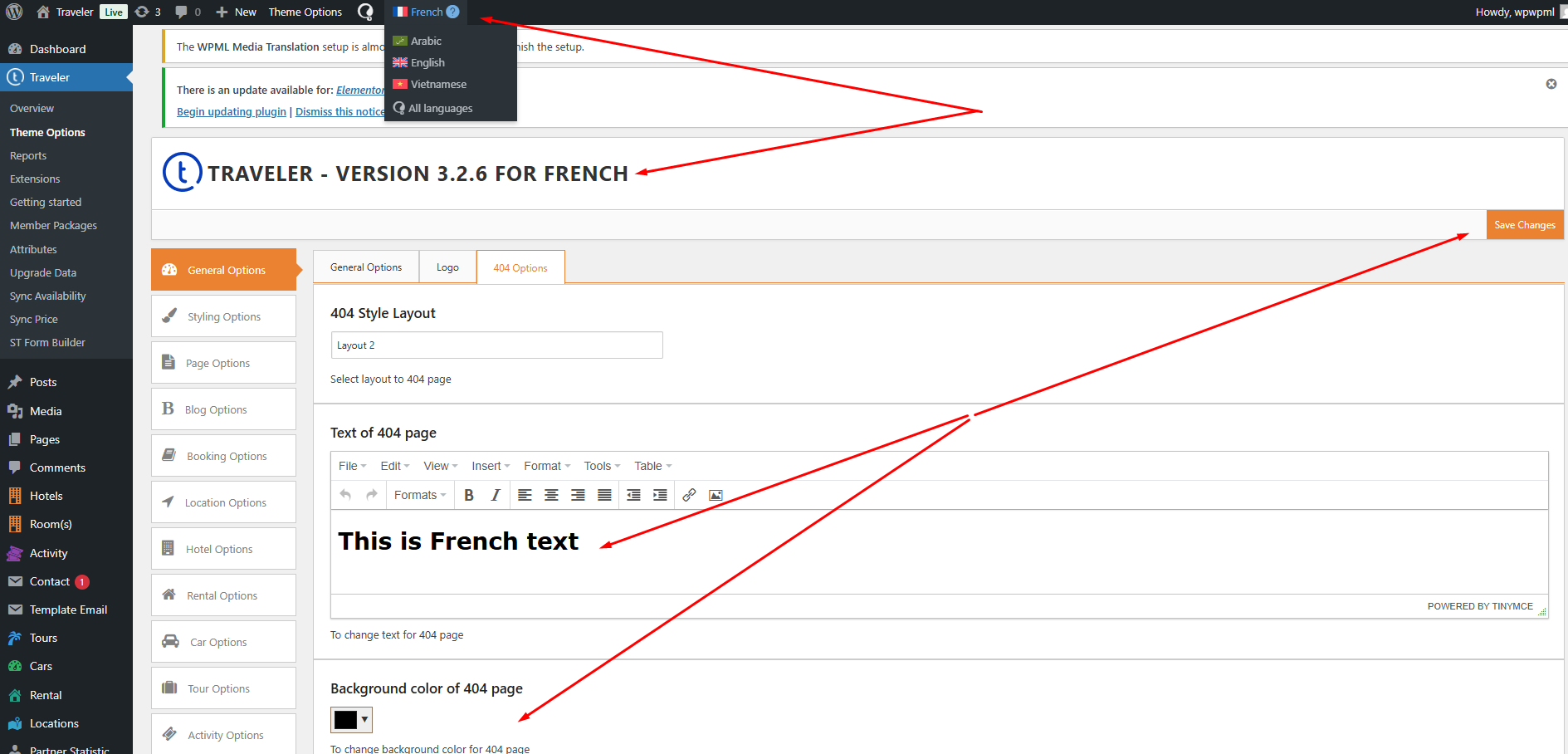 WPML is a popular WordPress plugin that lets you translate your site in multiple languages. You can translate posts, pages, taxonomies, custom content types, and other texts from themes like Traveler. The plugin gives you the choice to translate content automatically using WPML’s proprietary AI, Private Translation Cloud (PTC), or manually through human translators.